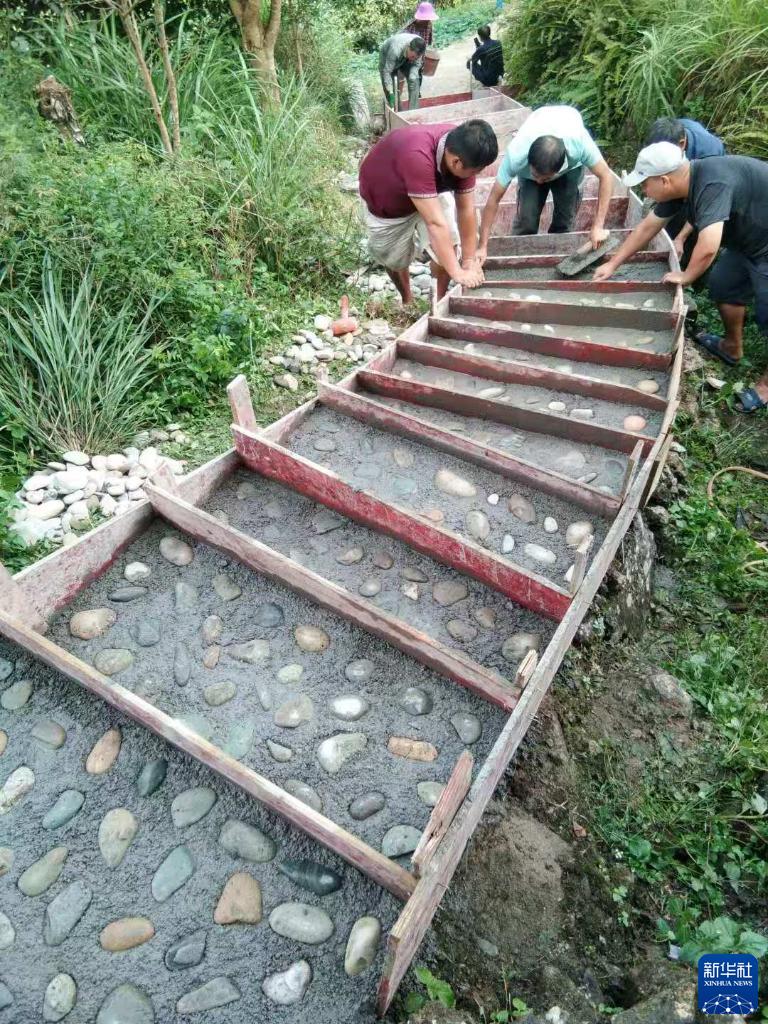 廣西龍勝各族自治縣龍脊鎮(zhèn)岳武村群眾在修建村里的一條觀光小道(資料照片)。新華社發(fā)(潘澤雷 攝)