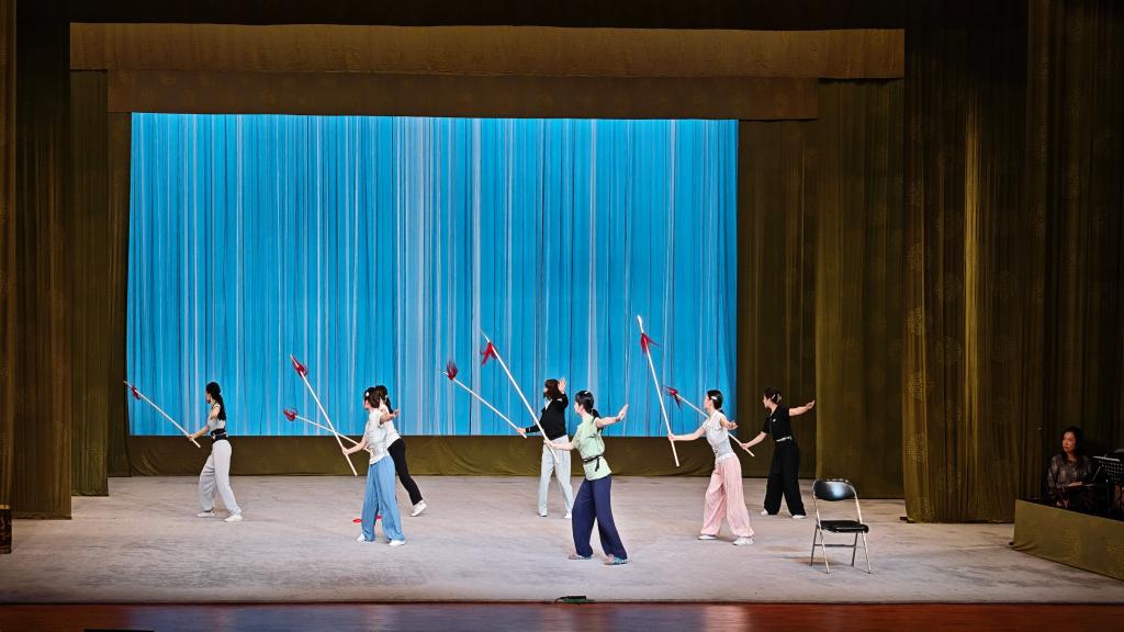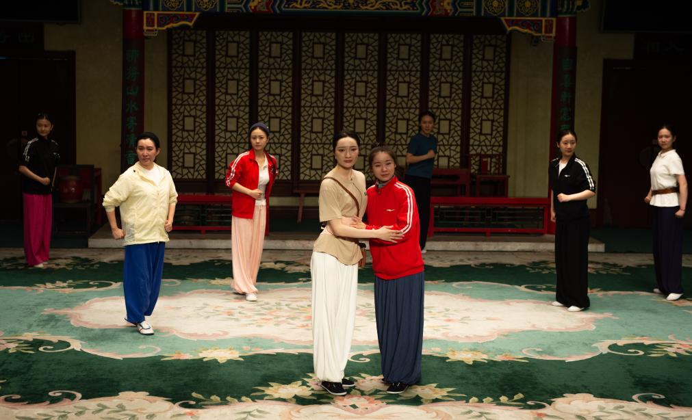9月北京,北京人民剧场排练厅,鼓点骤起,急促如命运敲门。八个年轻姑娘挽着手臂向前迈步,汗水顺着脸颊滑落,在练功服上洇开深色的印记。