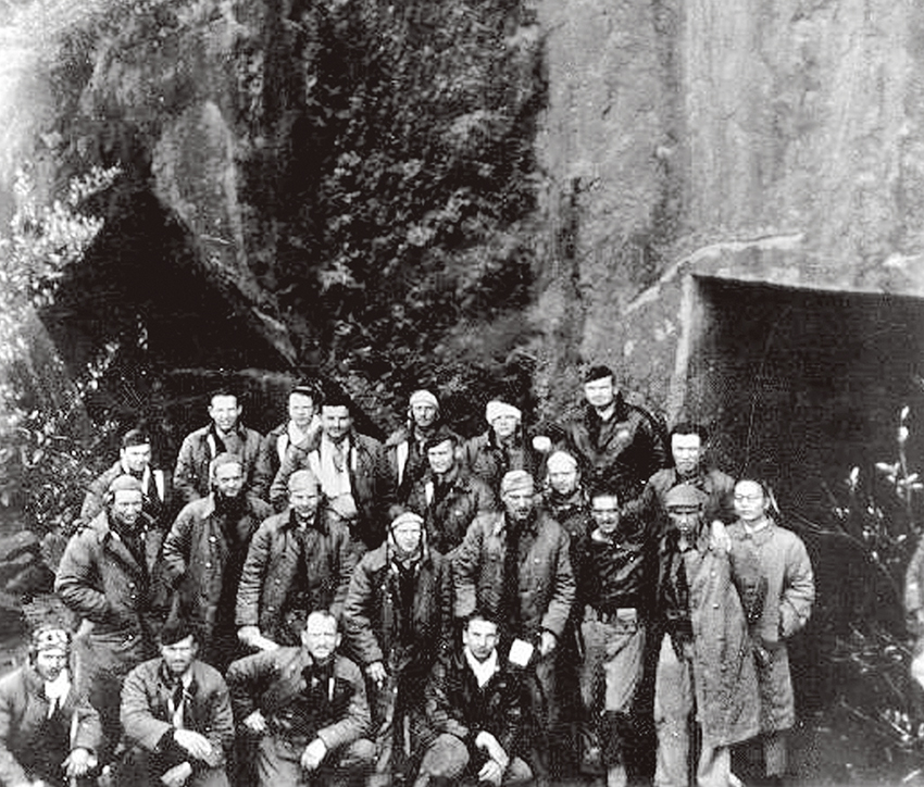 获救的部分机组人员在衢州汪村“石头山”空军第十三总站驻地合影