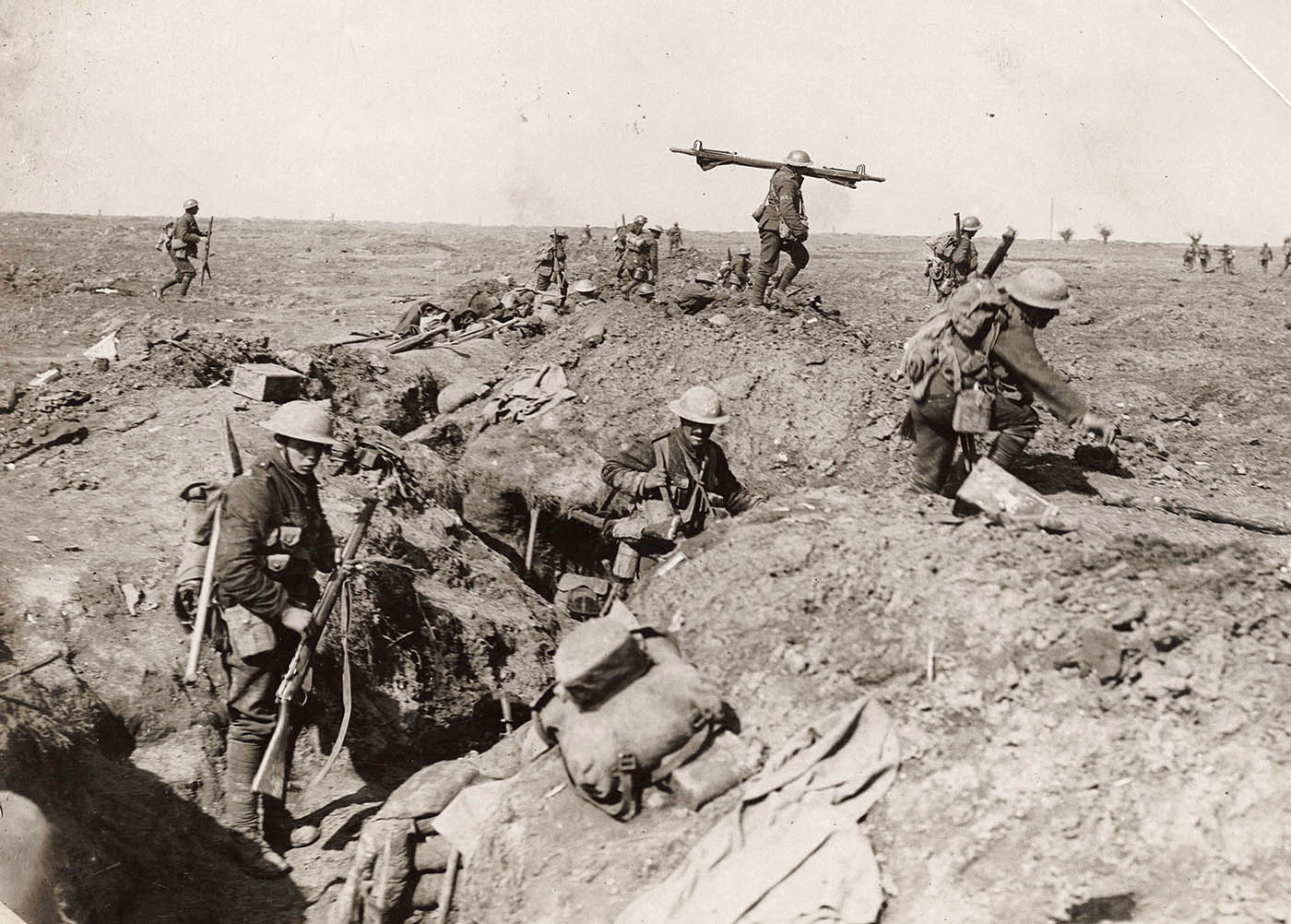 第一次世界大战爆发后,机枪、铁丝网和重炮的组合使得西线战场陷入长期的阵地战僵持,进攻方面对强大的防御工事,往往难以取得有效突破,直至1916年索姆河战役中坦克首次被使用,标志着新式“矛”终于诞生。虽然当时的坦克技术水平还比较低,但它仍然展现出强大的突破能力,能为进攻方打开一条通道。在其后发生于1917年的康布雷战役中,英军通过空地协同作战,利用飞机的空中优势和坦克的地面突破能力,成功突破德军防线,取得战役的胜利。