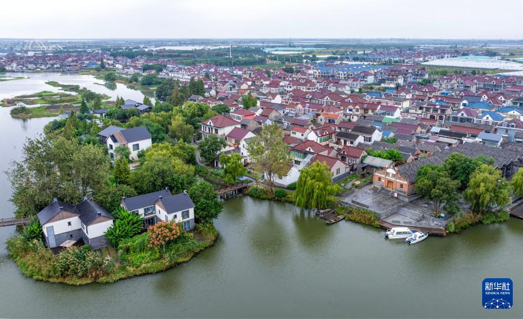 这是2024年8月拍摄的浙江省湖州市南浔区和孚镇荻港村全景(无人机照片)。