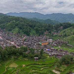 这是2024年7月20日拍摄的贵州省黎平县双江镇黄岗村全景(无人机照片)。