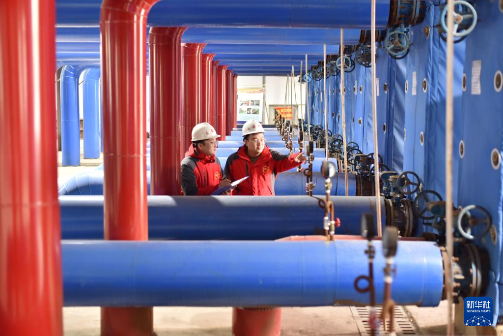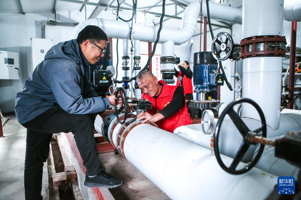 10月19日,在河南省焦作市博爱县九街社区,专业技术人员对集中供暖站的设备、管道开展全面检修维护。