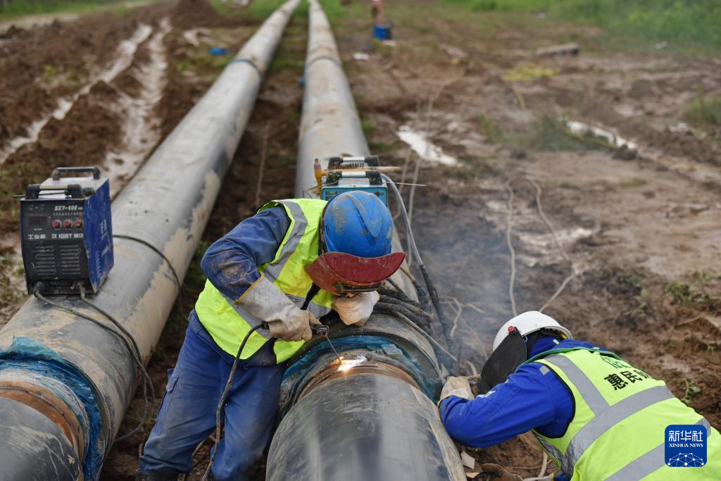 10月19日,山东省滨州市惠民县乐安热力公司工作人员在抢建高温水供热管道。