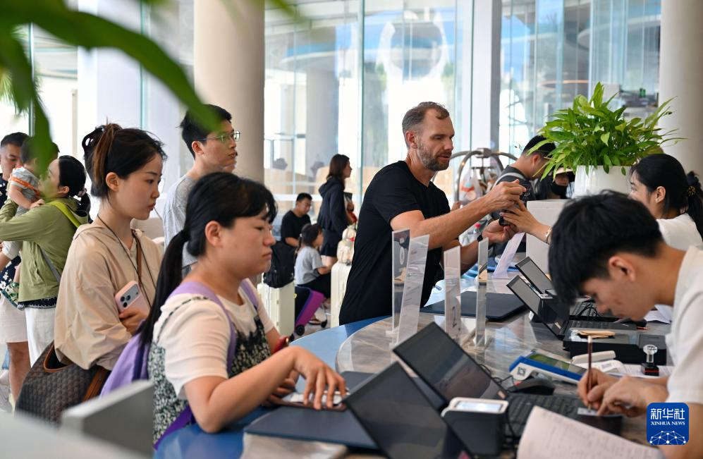 10月18日,游客在海南陵水一家酒店的前台办理手续。