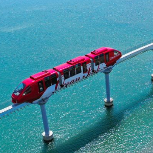 10月19日,海上小火车在海南海洋欢乐世界度假区行驶(无人机照片)。