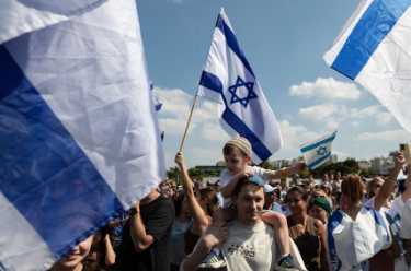 10月13日,人们庆祝搭载获释以方被扣押人员的直升机抵达以色列佩塔提克瓦的一所医院。