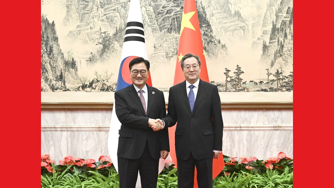 丁薛祥会见韩国国会议长禹元植