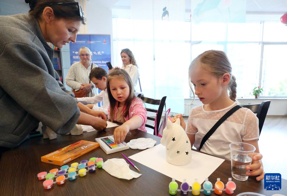 8月20日,在白俄罗斯明斯克,孩子们体验中国德化白瓷制作。新华社发(任科夫摄)