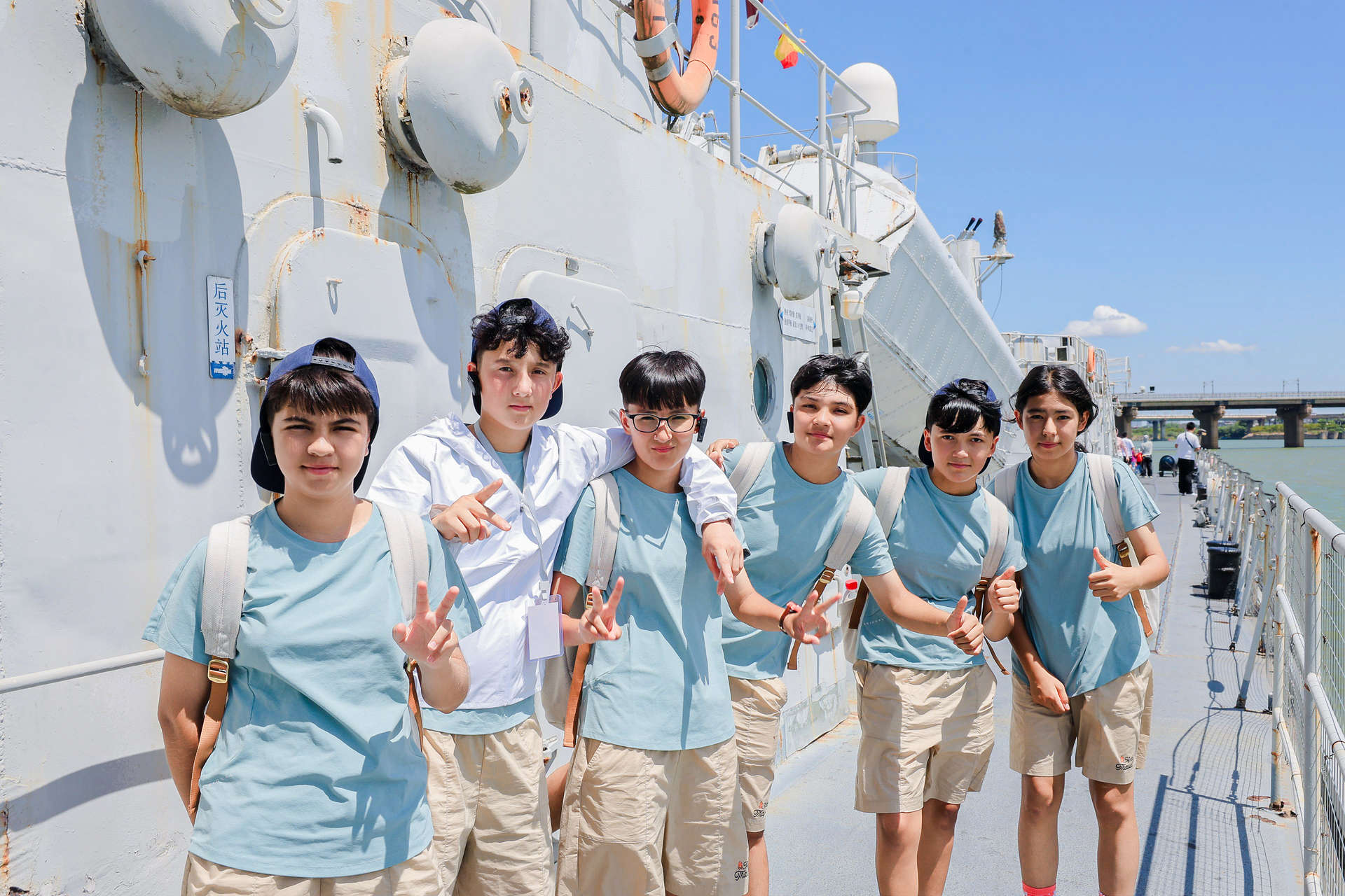 站在南昌舰的甲板上,江风拂面,甲板开阔,女孩们穿梭于舰体之间,兴奋地探索着这个“庞然大物”。“这是我第一次见到真正的军舰,”来自贵州的小雨(化名)感叹道,“比我想象的要大得多!”