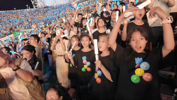 依依(化名)兴奋地说,这是她第一次来到这种大型的演唱会,也是第一次看到那么多人一起唱歌,觉得非常震撼、兴奋、开心。