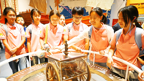 (8月,在北京参加“儿童成长营”活动的同学们在中国科技馆参观。)