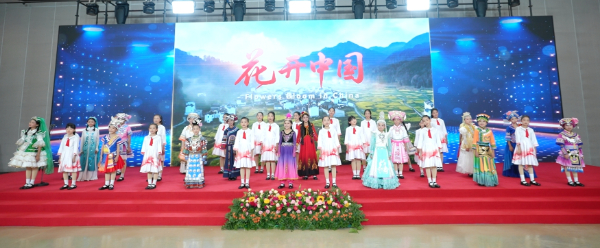 图为女孩们登上舞台,唱响《花开中国》。